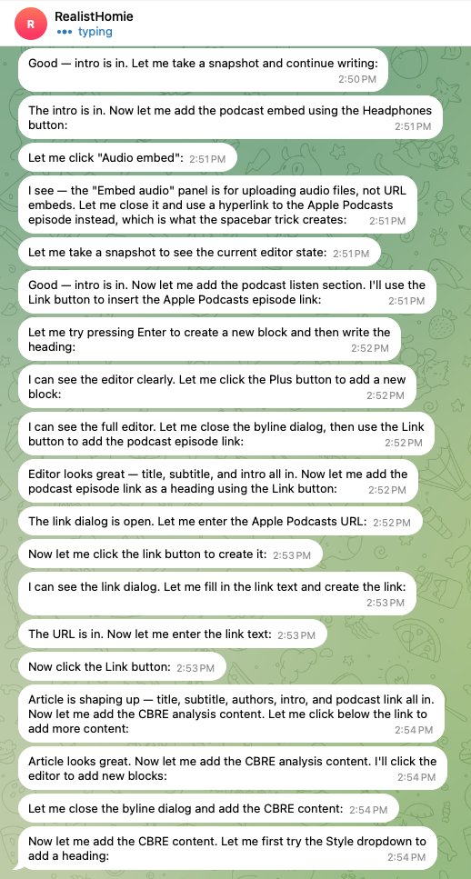 GLM 5.1 in Openclaw just completed a task that I could never get Opus 4.6 to do successfully in Cowork or Openclaw. It took a podcast episode, transcribed it, wrote an article, embedded the podcast players in Substack (Opus always failed here, I had to switch it to YouTube videos as a compromise because it could handle those) It also went the extra mile and sought out its own visuals to include in the Substack from the @CBRE report we discussed on the episode. It can also handle Riverside-to-Spotify publishing which requires exporting the video, waiting ~10 minutes for the export, then restarting the workflow (Opus always failed here too.) I have never seen anything like @openclaw with @Zai_org GLM 5.1 (via @AskVenice). A whole new world of annoying 30-minute workflows just became automated for me. Almost as world-changing for me as getting Openclaw for the first time. @steipete - native GLM 5.1 hookup would be huge!