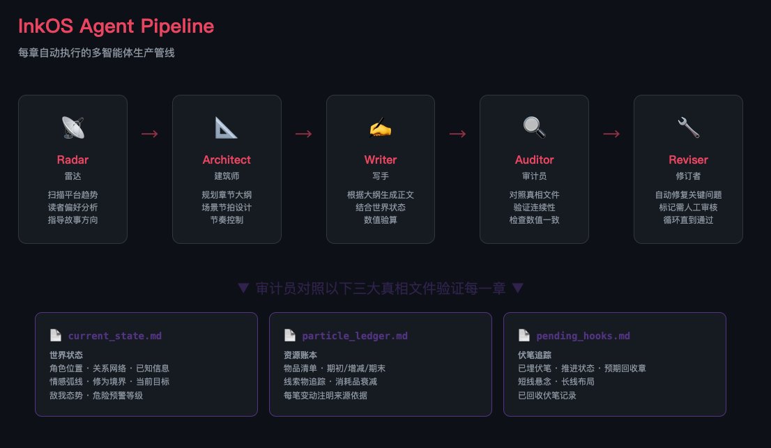 你的龙虾不能赚钱?要不试试让Agent写小说? 一个完全开源可自定义的AI写作系统,通过“记忆文件”记录世界观、人物关系,避免AI常见的“前后打架”问题👇 https://t.co/D9CALb4SJJ 👉 多Agent协作写小说(写作+审核+修改) 👉 自动生成章节,还能持续续写 👉 支持批量写章节 👉 可模仿风格、做续作 👉 最离谱的是:能保持剧情一致不崩