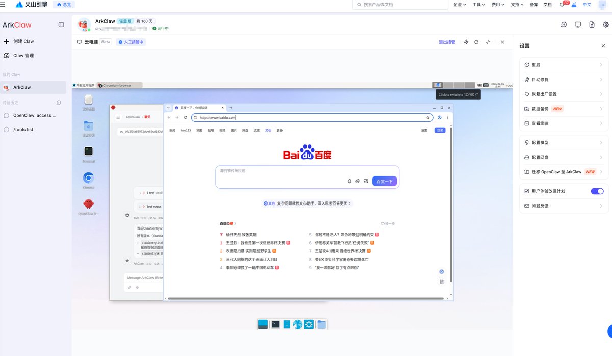 ByteDance's ArkClaw provides a free cloud computer environment upon subscribing to CodingPlan.