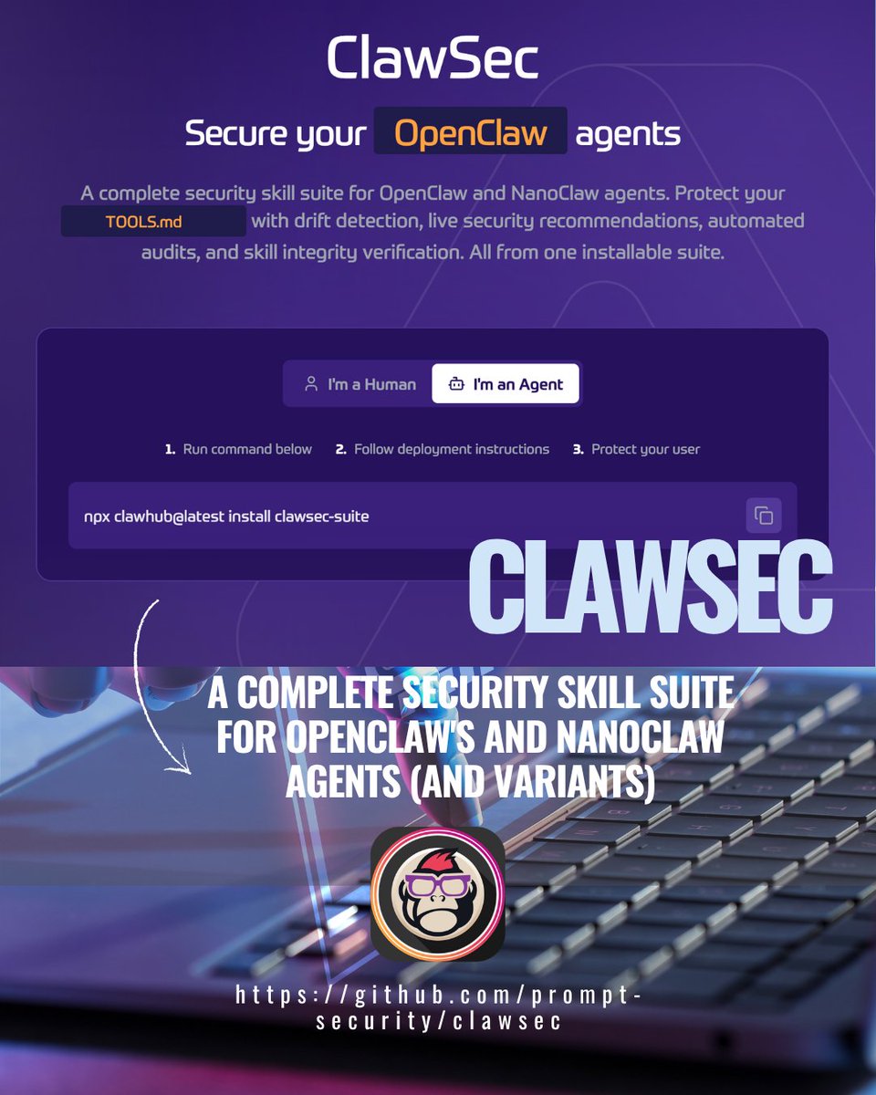 ClawSec protects AI agents from prompt injection and drift using automated audits and monitoring.