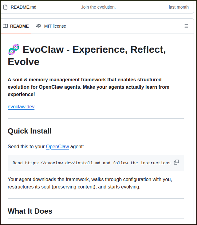 Structured soul evolution for OpenClaw agents https://t.co/CgQg24EHF9 https://t.co/IHgL303mqT