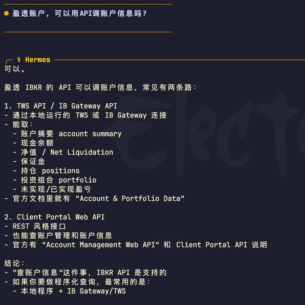 其实我在很早期就部署过 Hermes,那时候它刚出来。所有好玩的新项目我都会去试一遍,尤其是在找 OpenClaw 的轻量替代时。当时我发现 Hermes 对话里会调用一堆工具,作为小白根本看不懂,就直接关掉删除 pass 了。毕竟自己都看不明白,又怎么可能推荐给兄弟们。 所以,再好的项目也还是需要宣传,根本没有什么酒香不怕巷子深,还是得宣传。你看后面兄弟们再一宣传,我又回来用(之前都已经忘了😅),才发现它是个宝藏项目。 最近更新后,默认工具链也都不显示了。顺便提一嘴,在没有官方 UI 的情况下,还是终端最好用,Telegram 也没有终端好用。而且我发现 Telegram 挂了,终端都不会挂,我现在是直接 SSH 连上去用的。