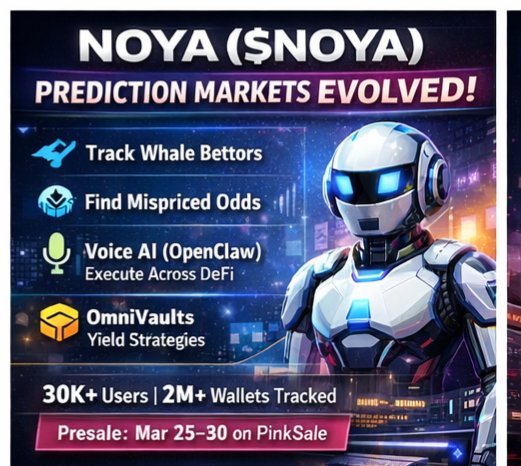 The AI-powered NOYA ($NOYA) is changing the way prediction markets work on Base. Track whales, surface mispriced odds, and execute strategies instantly with the voice-controlled OpenClaw agent. Already 30,000+ users, 2M+ wallets tracked, and Top 5 on Kaito leaderboard. OmniVaults unlock new yield opportunities across chains & assets. Presale ends Mar 30 on PinkSale. Grab your $NOYA now! Presale Link https://t.co/Xhz0zZ51Qu Tag @NetworkNoya & stay updated! #ad