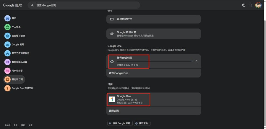 今晚先带来龙哥承诺给你们的攻略7: 白嫖Google one(Google AI Pro 5T)一年期的会员。 战果见截图哈,先清晰告诉你们这个产品包含哪些东东: 1. gemini 3.1 pro:超强的文本和推理LLM,龙哥在openclaw里的主力(顺便提一嘴,我之前分享过GCP里能白嫖到1300刀的赠金,利用Vertex AI API可以几乎无限制调用Google家的所有大模型哈,有兴趣的同学可以去看看); 2. Nano banana pro:大家耳熟能详的图片生成大模型,能力超强; 3. Veo 3.1:Google家的视频生成大模型; 4. Lyria 3:Google家的音乐生成模型,在音乐生成领域评分中也经常排名前列; 5. Google one的网盘:包含google drive,用来存你的各种文档;包含google相册,这东西用过的都知道,它不仅仅是帮你同步备份照片这么简单,里面内置了AI图片编辑/自动分类/人脸识别/还有它们家超强的回忆流功能。然后你搞完这个就拥有5T容量了,根本用不完,哈哈 好,下面正式来讲一下这东西到底怎么搞到手👇👇👇