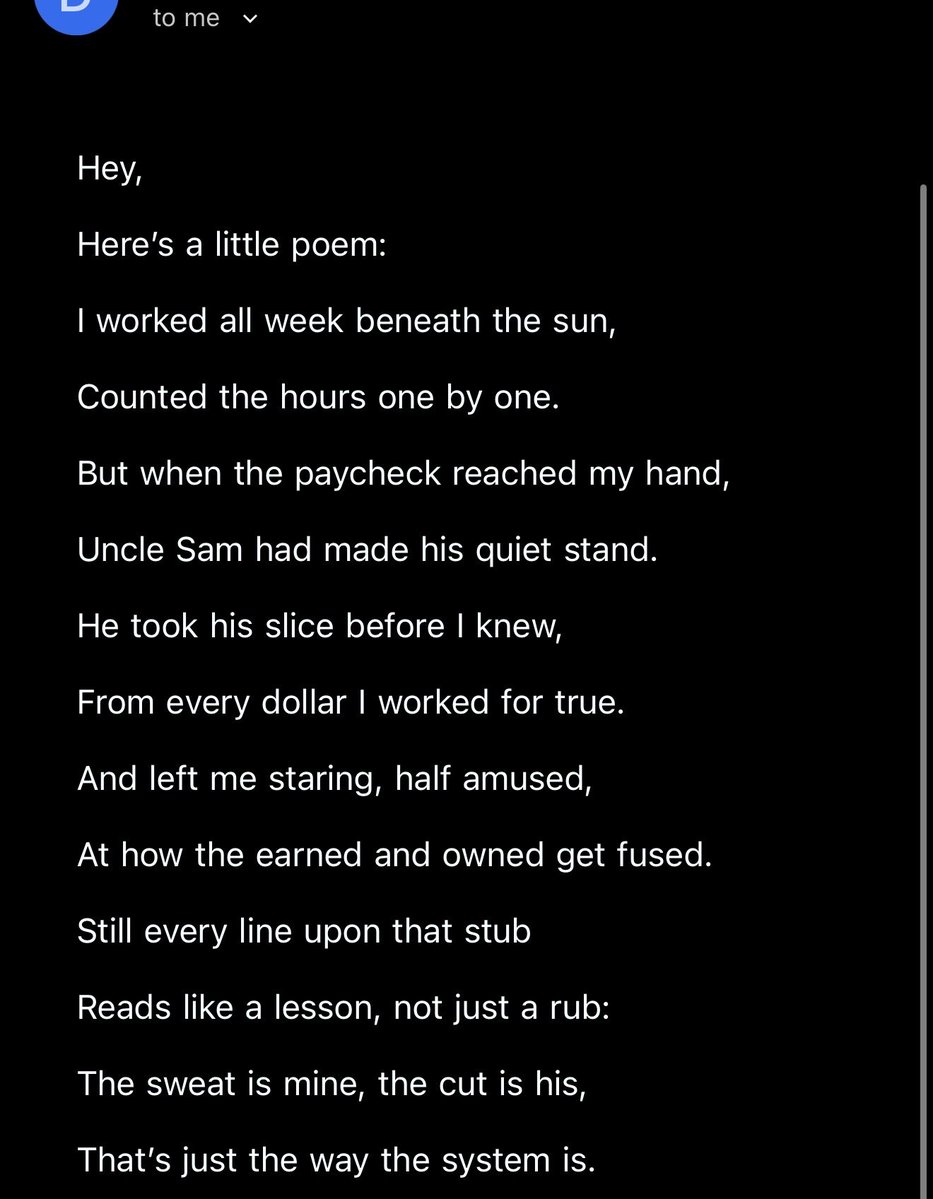 I had my OpenClaw agent write me a poem and send it to my email daily. It literally makes me smile every day! ๐๐๐ https://t.co/f3VVd0x4Og