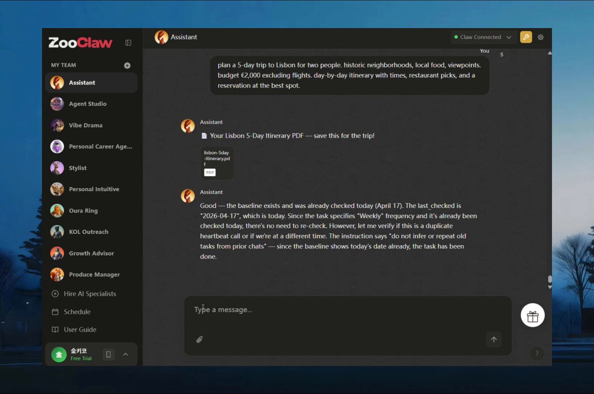 If you found OpenClaw too technical, this is for you. ZooClaw just launched as the version of OpenClaw built for everyone. You speak, and the right specialist takes over. → Research, Writing, Companion, and Presentation agents. → Triple security audits and SOC 2 in progress. → If a token leaks, the isolated cloud environment makes it useless.