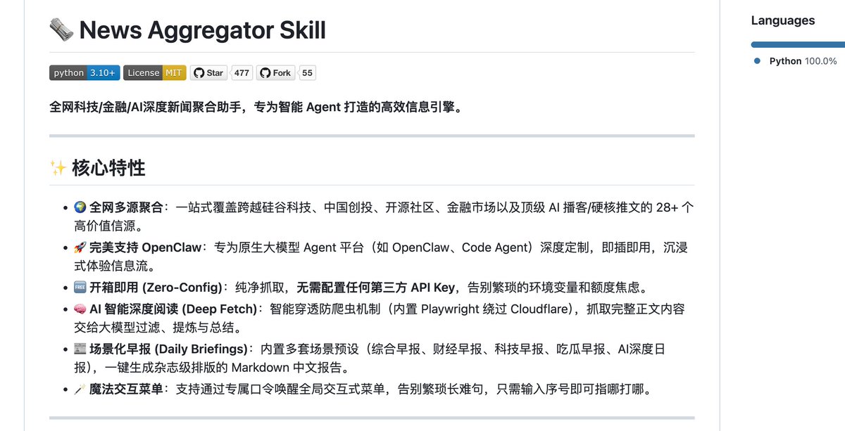 展示了 10 个零成本、免 API 的 OpenClaw 技能清单,覆盖浏览器自动化、信息检索、办公提效及智能体自我进化场景。