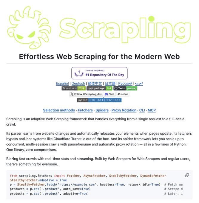 将 OpenClaw 与 Scrapling 集成,实现能绕过 Cloudflare 防护且无需维护选择器的强大网页抓取功能。